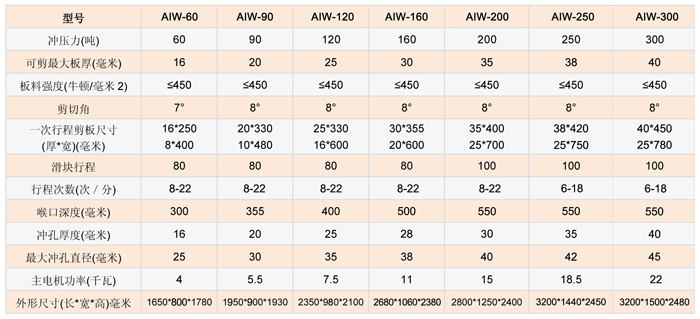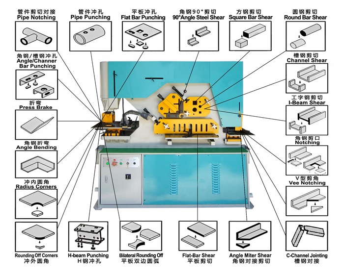 標配1套沖孔模具,1套剪板刀片,1套角鋼剪切刀片,1套模剪刀片,1套型材剪切刀片